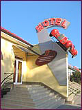 обозначенная словом "мотель", расположена на выезде из города, на трассе