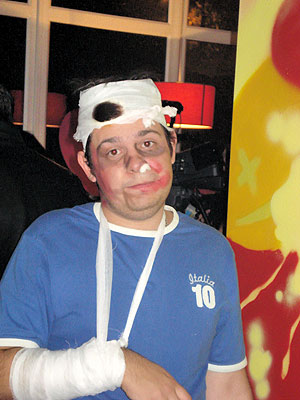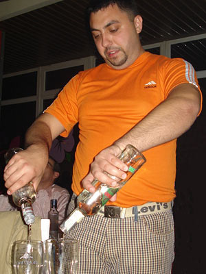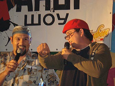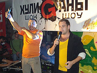 Арт-кафе "PartyФОН". Что такое "Хулиганы"? Одни скажут, что это одни из вариантов "Камеди-клаба", другие - клубные вариант СТЭМа Машинки - "Будильник". В принципе, и те и другие будут правы... отчасти. Дело в том, что многие из участников шоу являются резидентами "Камеди", а само ядро шоу построено на актерах СТЭМа "Будильник". Кстати, и руководитель проекта Богдан Донец тоже вышел из вышеозначенного СТЭМа. В свое время он был и капитаном команды КВН "Будильник" (в последствие - "Славутич"). И все-таки... Это шоу отличается от Камеди. Отличается оно хотя бы тем, что сквозь все представление красной пунктирной линией проходит какая-то фраза, тема, прикол. Так, на втором выступлении - это был День рождения девушки одного из участников шоу - Арсена Мирзояна. И все, кто выходил на сцену, не преминули вспомнить про этот знаменательный день и подарить уникальный подарок. Каждый дарил по брелку к мобильному телефону. Собственно, телефон ей должен был подарить сам Арсен. Кстати, так и не подарил... Зато брелков теперь.. :). На третьем выступлении (а 11 октября было как раз оно - третье) каждый со сцены призывал друзей участников шоу, которых провели на выступление на халяву, заплатить за вход. И наконец, шутки, гэги, сценки. Они есть. Как пример, перепевка песни "Вахтерам" группы "Бумбокс" в исполнении Арсена Мирзояна: "Тебе не нравится сын? Фиг с ним. Тебе не нравится дочь? Она ты точь-в-точь..." Припев: "Белые обои, черная посуда. Нас в хрущевке восемь, а прописано двое: кт вы и откуда?" |