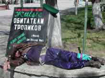 Но только мы нагибаемся над ним, как слышим... храп (!). Мы со смешанными чувствами обаричивамся к его товарищу, на что тот невозмутимо отвечат: "Это у него