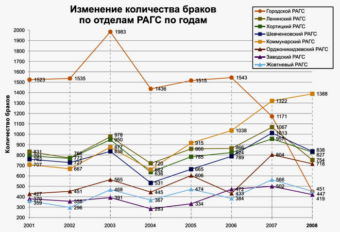 Статистика свадьб в Запорожье в 2008 году (по