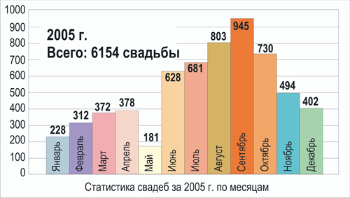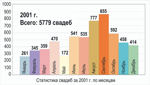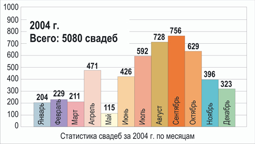 а окончанием - декабрь. Традиционно, мало свадеб зимой, однако по месяцам