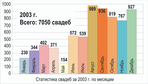 Статистика свадеб в Запорожье в 2003 году (по месяцам)