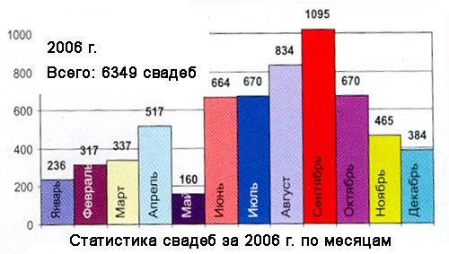 Статистика свадеб в Запорожье в 2006 году (по месяцам)