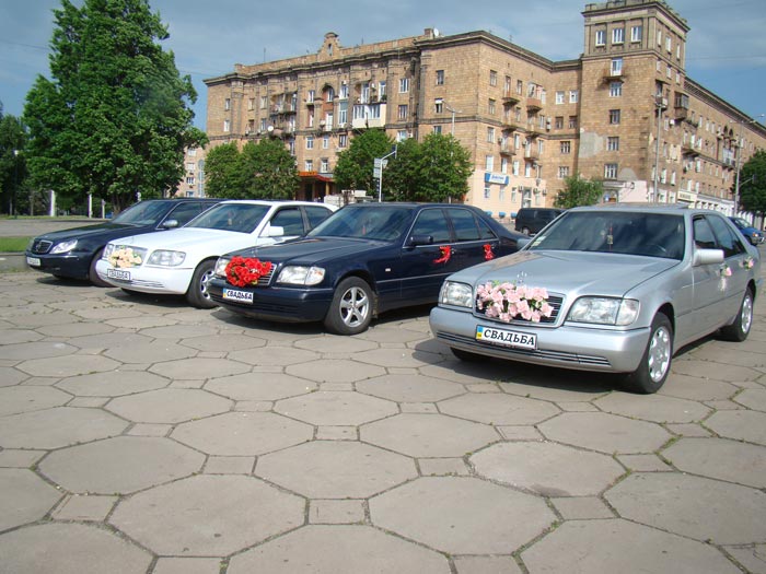 Для свадебного кортежа вы можете выбрать черные Мерседесы. Заказ свадебных