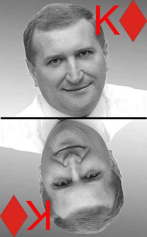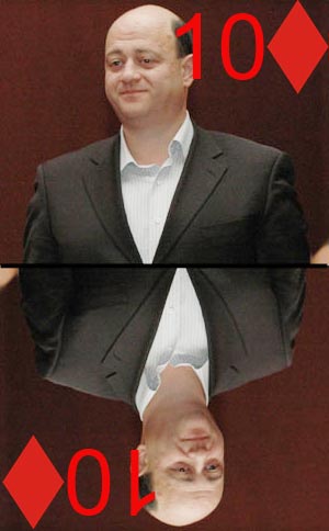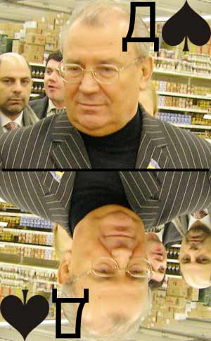 Туз пик. Дворецкий Игорь Владимирович. Через компанию "Запад-Резерв" частично владеет ОАО "Запорожсталь" (акции комбината принадлежат также Алексу Шнайдеру и Эдуарду Шифрину). Любит футбол: вместе с Николаем Солдатенко он руководит футбольным клубом "Металлург". Член наблюдательного совета КБ "Индустриалбанк". Эта коммерческая структура часто кредитует городской бюджет, а также обслуживает счета коммунальных предприятий и, само собой, ОАО МК "Запорожсталь". Кроме нескольких банков в его сфере влияния: ЗАО "Зап-Экоресурс", ООО "ИПК Запорожье" (более 68%), ООО "Айс Запорожье", Запорожская кондитерская фабрика (более 60%), ООО "Запорожская независимая телерадиокомпания "ТВ-5" и другие. Член Попечительского совета Еврейской Конфедерации Украины. Родился в 1963 году на Камчатке. |