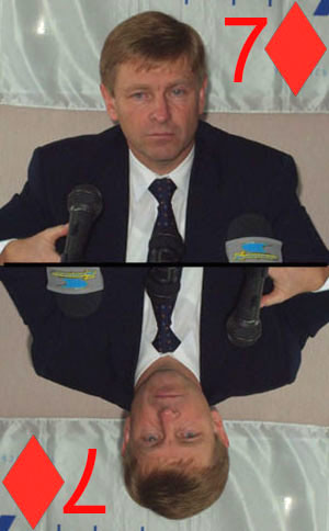 Семерка бубен. Береза Анатолий Валентинович. Председатель правления ОАО "Запорожский абразивный комбинат". Бывший член НСНУ, ныне, состоя в рядах социалистической партии, остался за бортом политической деятельности. Баллотировался на должность мэра Запорожья. Известность приобрел частыми выступлениями в областном совете прошлого созыва, когда был депутатом. Родился в Черкасской области. |