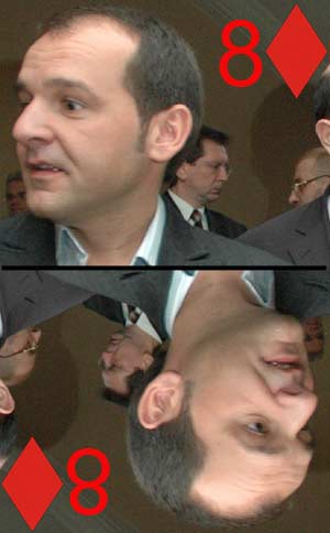 Восьмерка бубен. Самарский Тим Станиславович. До недавнего времени владел ООО "Торговая компания "КИТ" и, соответственно, одноименной сетью магазинов (по последней информации "Киты" выкупил Евгений Черняк). Депутат городского совета от фракции "Запорожье – наш город". Родился в 1966 году в Запорожье. |