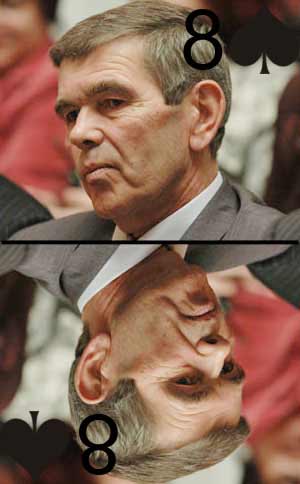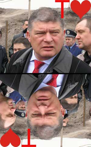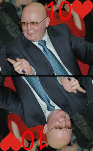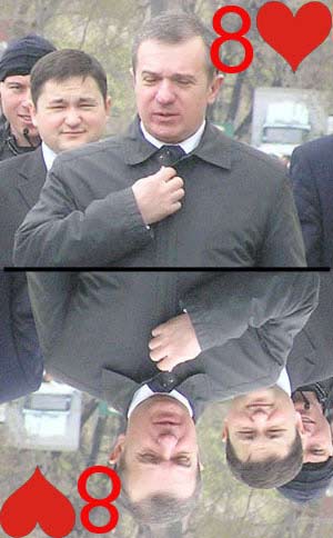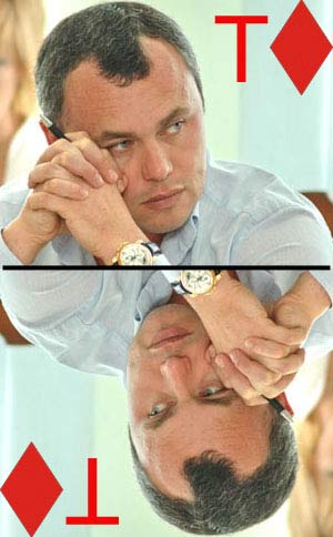 Туз червей. Червоненко Евгений Альфредович. Губернатор Запорожской области. Экс-министр транспорта. Особа, приближенная к Президенту Украины Виктору Ющенко. Бизнес – концерн "Орлан". Многие считают, что Запорожье – ссылка для губернатора, который стремиться вернуться в большую политику. Сформировал в областной администрации команду госменеджеров, которая решает вопросы в его отсутствие. Один из основных ньюс-мейкеров (люди, о которых говорят СМИ) не только в Запорожье, но и в Украине. Родился в 1959 году в Днепропетровске. |