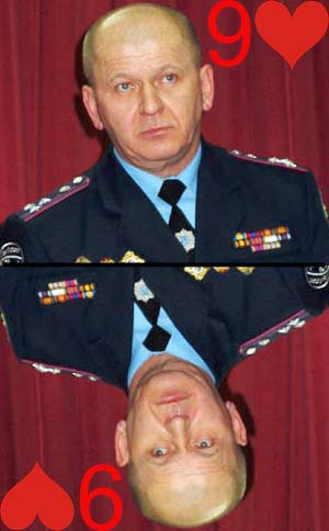 Девятка червей. Шмитько Александр Григорьевич. Начальник ГУ УВД области. В январе 2007 года сменил на этом посту Виктора Ольховского. В 1998 – 2002 годах руководил "шестеркой" (Запорожский УБОП). После работал в Днепропетровской области и Киеве. Родился в 1954 году в Запорожской области |
