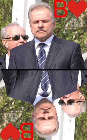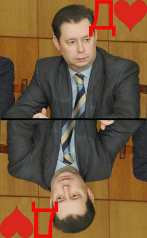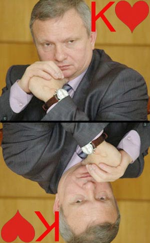 Король червей. Бережной Александр Павлович, первый заместитель губернатора. В прошлом – партийный деятель, а также депутат областного совета двух созывов. С 2002 по 2006 год заместитель председателя облсовета. Статус стажера сменил на официальную должность сравнительно недавно. После этого, по сути, стал вторым человеком в области. Родился в 1956 году в Луганской области. |