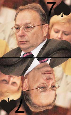 Дама пик. Карташов Евгений Григорьевич. Мэр города Запорожья с 2003 года. Имеет огромный опыт комсомольской и партийной работы. Как указано на официальном сайте мэрии: "прошел закаливание запорожсталевскими горнилами на должностях директора внешнеторговой фирмы, потом – заместителя гендиректора". С 1999 по 2000 года занимал пост запорожского губернатора. Был послом Украины в Казахстане. В марте 2001 повторно сел в кресло главы обладминистрации, где пребывал до 2003 года. Довольно часто меняет политические взгляды. Родился в 1942 году в Донецкой области. |