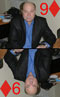 Девятка бубен. Рекалов Геннадий Александрович. Медиамагнат. Учредитель: ООО "Телерадиокомпания "Контакт", ООО "Электронные средства коммуникаций", ООО "Радиокомпания "Ностальжи", СП "Рич", ООО "Старое Лото", бывший гендиректор ЗАО "Телерадиокомпания "Алекс". Депутат городского совета от фракции "Запорожье – наш город". Довольно активный запорожский политик. Родился в Луганской области. В Запорожье живет с 1954 года. |