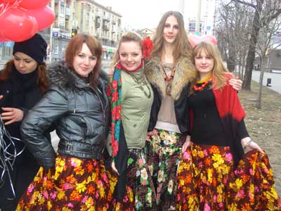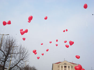 Около 30 шаров взлетело в небо... (Возле горисполкома) |