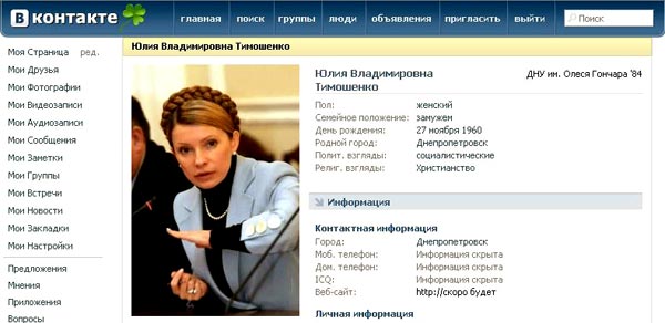 сети не овладели. В "Одноклассниках" есть по паре анкет Юлии Тимошенко и Виктора