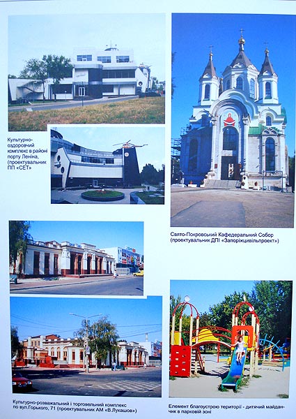 Архитектурно значимые объекты, построенные в Запорожье: - Бизнес-центр "Александр-Холл" по пр.Соборный (пр.Ленина); - Торгово-культурный центр по пр.Соборный (пр.Ленина), 75; - Жилой комплекс со встроенными торговыми помещениями и подземным паркингом; - Административное здание "Днепроэнерго" по ул. Трегубенка |