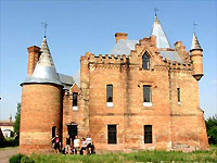 За каретной - эффектное здание с двумя башнями по краям, напоминающие крепость.
