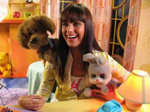 груди, одетая во все оранжевое и белое с сердечками, с обожанием смотрит на Юлю,