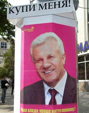Порошенко долго смотрит на плакат "Ющенко ТАК!", потом останавливает прохожего и