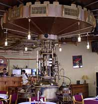 огромным пивной агрегат в центре зала. От него отходит труба ("перегонки"),