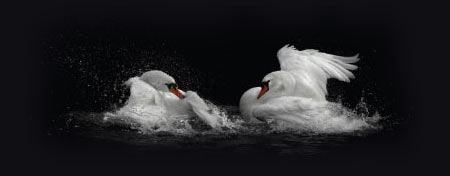 стали белые лебеди на черном фоне. Витрины выставочных стендов с такой яркой