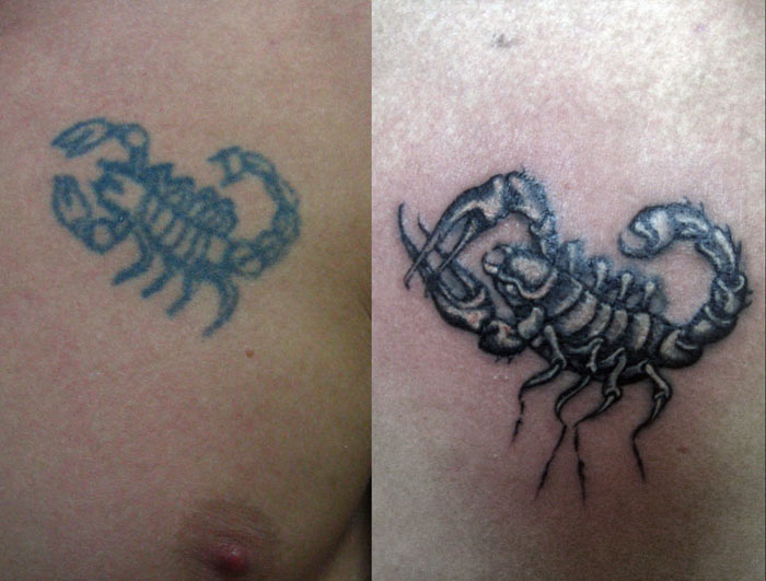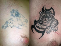веки), художественной татуировкой, реставрацией тату (кавер-ап (англ. cover-up),