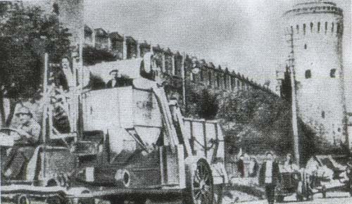 Первый в СССР комбайн "Коммунар" во время демонстрации около Кремля в Москве