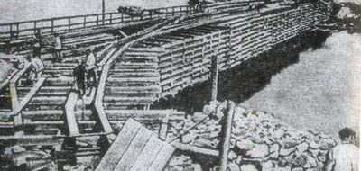 Гигантсткую плотину строили сразу с обоих берегов Днепра, соревнуясь, где