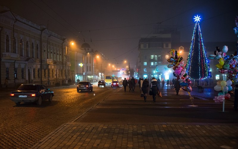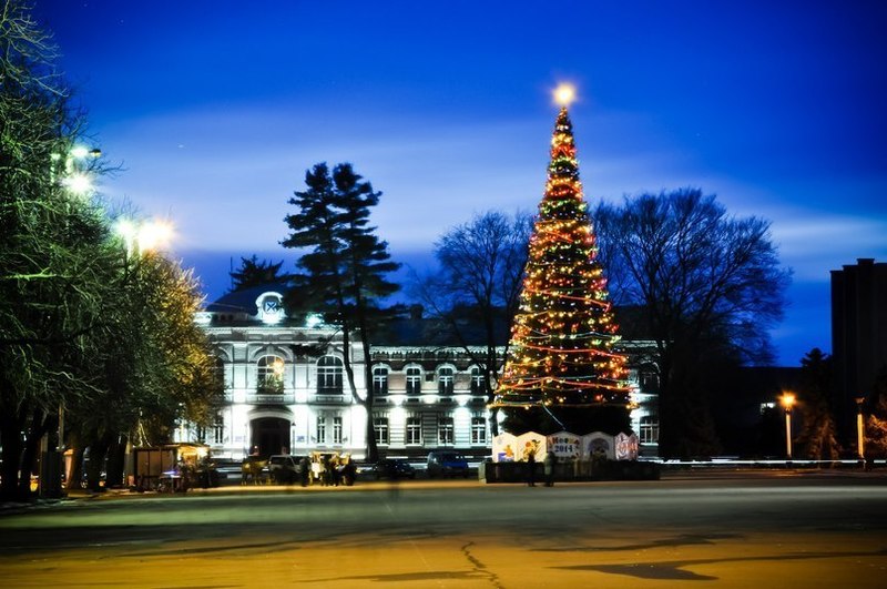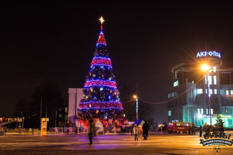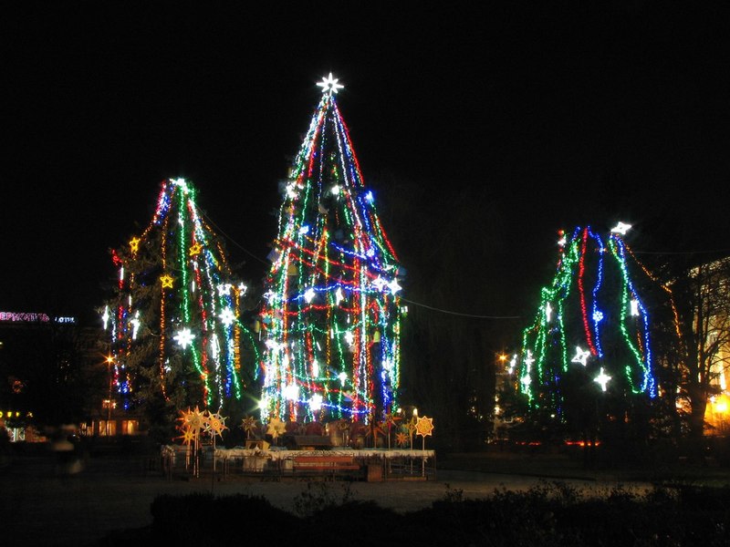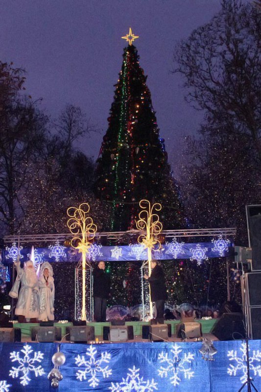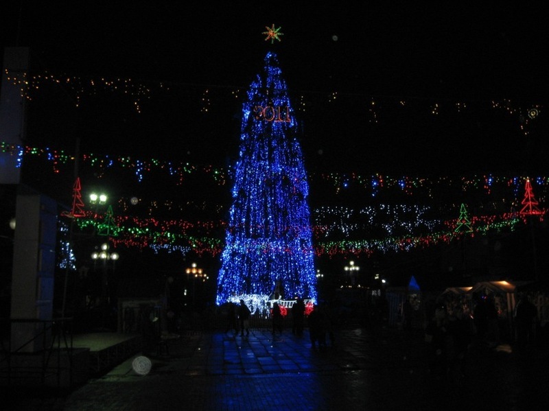 4. Днепропетровск. Высота 26 м. Елку собрали в парке Глобы из 12 тыс. искусственных сосен, предосталенных местным лесхозом. Она единственная из главных елок, которая крутится. На нее водрузили более 4 тыс. игрушек.
