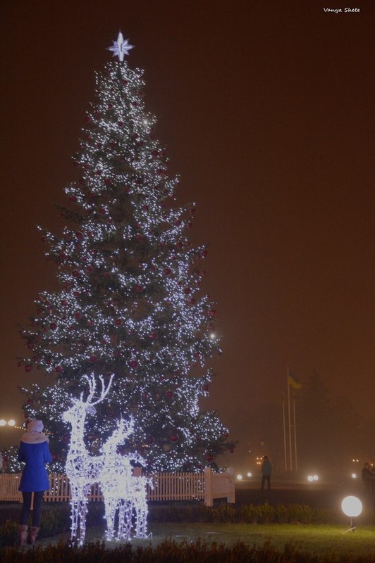 14. Луцк. Высота 20 м. Живая елка, которая растет в центре города.