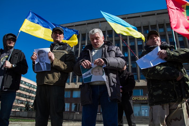 В Запорожье активисты "Правого сектора" рвали плакаты Петра Порошенко. С символичным ритуалом Правый сектор вышел митинговать за проведение настоящих реформ под стены Облгосадминистрации.