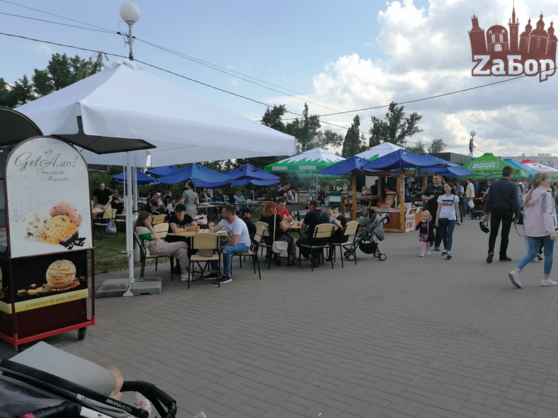 На пикник со своей продукцией приехали немало кафе и ресторанов. В частности, тут были, Шашлык маркет, Панда меню, Сир Ланселот, Шаурма клуб, Сангрия, Бургер плейс, WoBu, Фиш энд Чипс, Реберня.