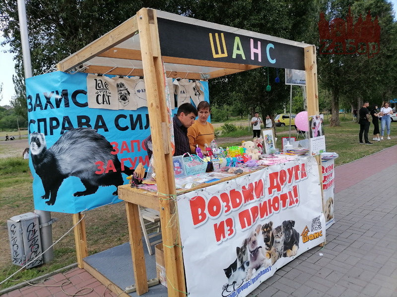 Также на фестиваль приехали и представители из приюта для животных "Шанс". Правда самих животных тут не было. Однако, здесь установили палатку с сувенирами и плакаты с животными, которых можно забрать из приюта.