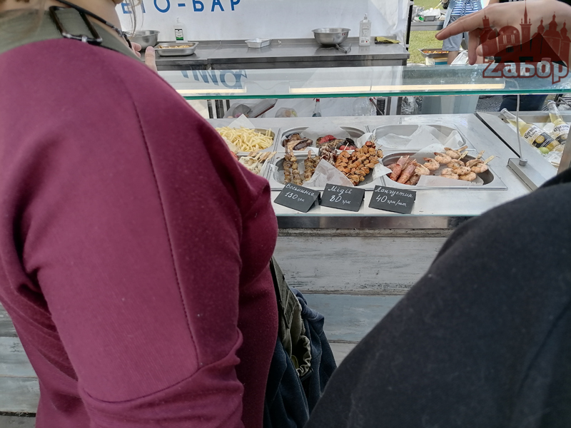 В последний день, желающих посетить мероприятие собралось много. Люди выстаивали очереди к ларькам с едой, большая очередь была и в туалет. Зоны со столиками, столами и пуфами, где можно было присесть, были все заняты. При этом, некоторые ларьки устанавливали столы и стулья для посетителей рядом с собой. Была отдельно и зона с высокими столиками, возле которых можно было остановится и покушать.