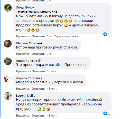"Теперь на дистанционке можно математику в школу не делать, линейки запрещены к продаже, остановили продажу, остановили вирус, а другие вакцину ждали";