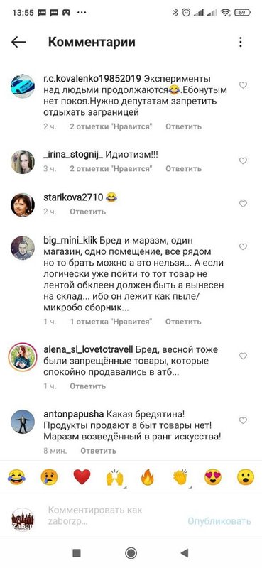 "Навколо одних товарів вірус є ,а навколо інших немає,яка дурня,до чого то все якщо люди все рівно скупчуються в тих супермаркетах,транспорт працює,в лікарнях скрізь черги тих хто вже хворіє і тих хто йде з іншими проблемами...дурдом..влада взагалі без голови..";