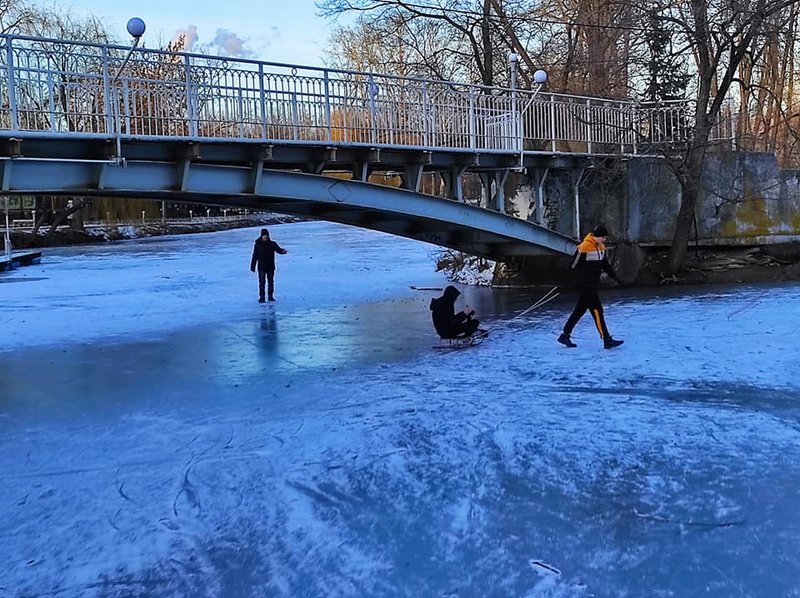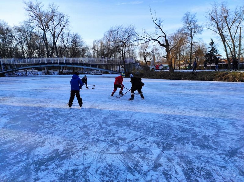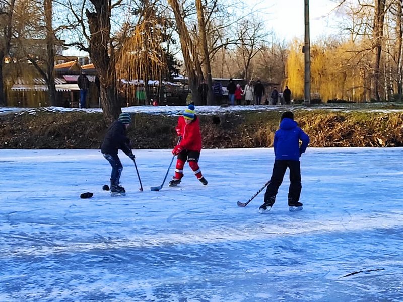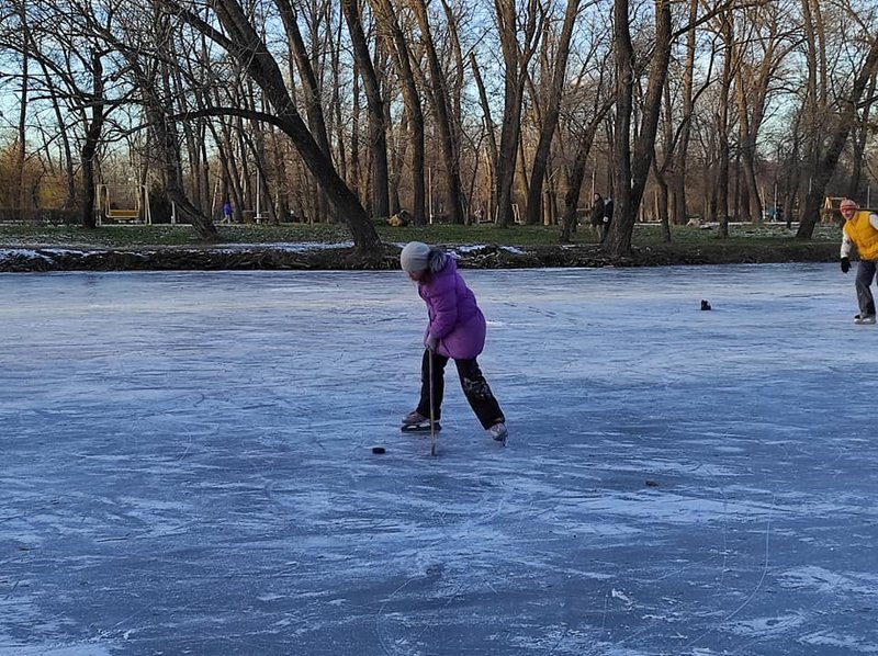 А 14 февраля в парке "Дубовая роща" устроили каток и соревнования по хоккею на пруду.
