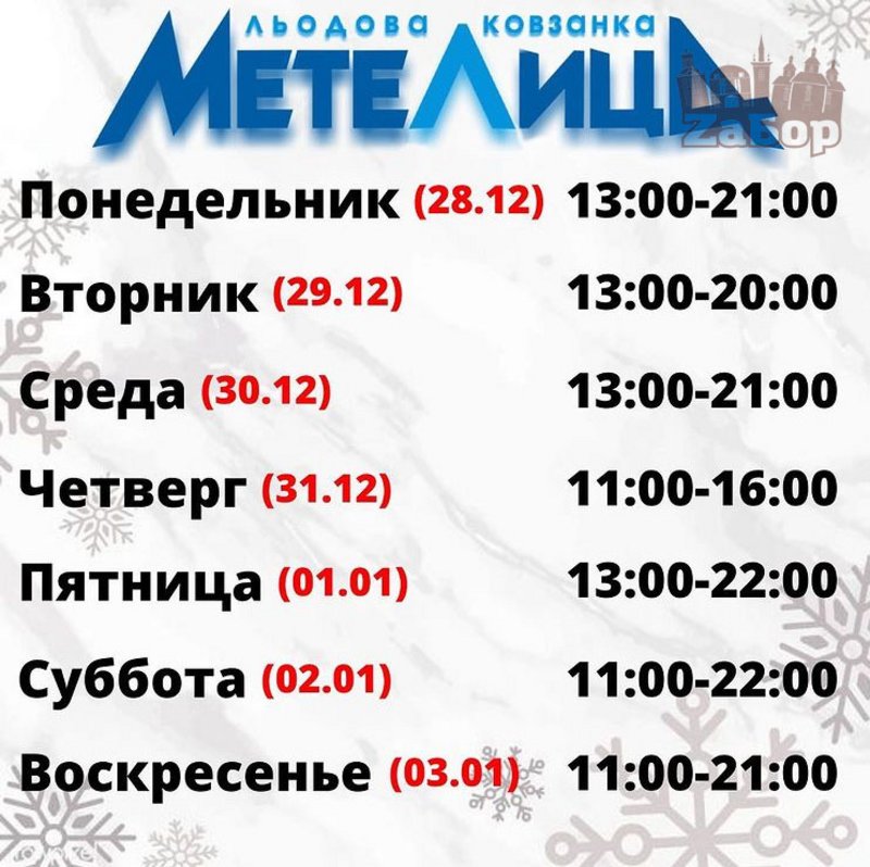 Ледовые катки в Запорожье: цены и график работы в праздничные дни