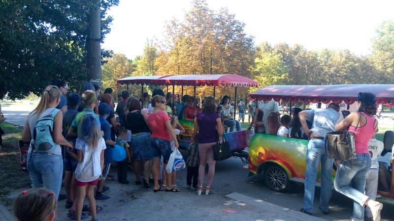 В рамках праздника по Вольнянску ездил детский паровозик. Взрослых катали по 20 грн, детей, старше 10 лет - по 10.