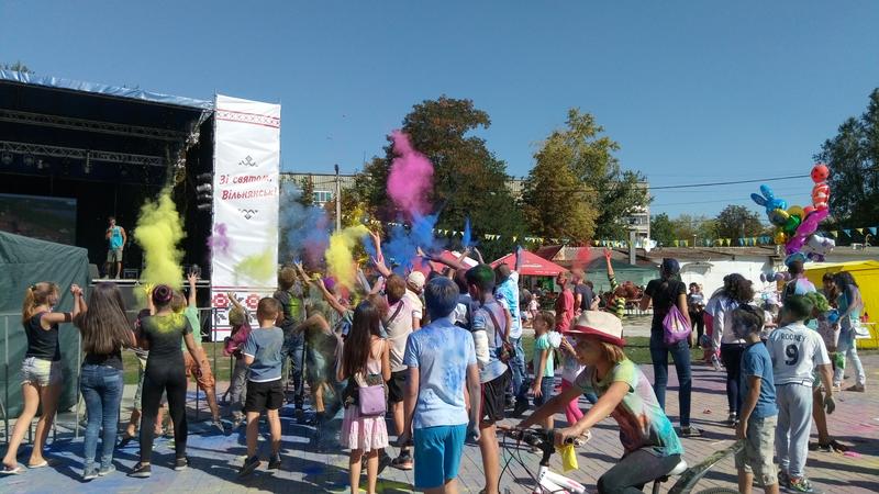Также на Дне Вольнянска с 12 до 15 проходил фестиваль красок, где все желающие могли принять в нем участие. Стоимость пакетика с краской была 20 грн.