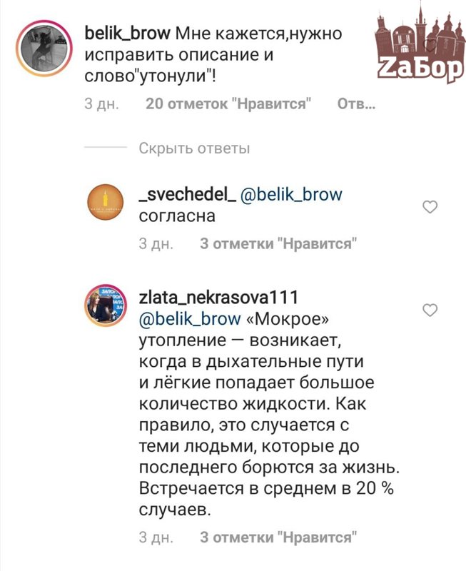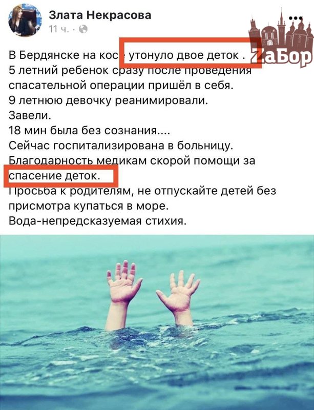 Стоит отметить, что в соцсети заместителя губернатора Злату Некрасову обвинили в хайпе не этом событии. Так, Некрасова опубликовала пост, в котором написала, что дети утонули. И тут же пользователи в комментариях начали обвинять Некрасову в хайпе и говорить, что это не правда. Однако, позже зам губернатора опубликовала исправленный пост.