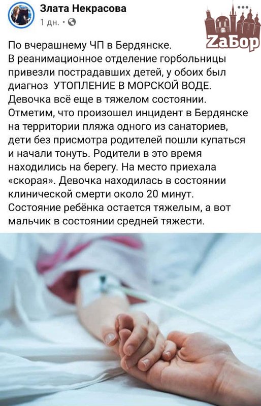 На данный момент 7-летний Даниил чувствует себя хорошо. После проведения кислородной терапии его вернули в педиатрическое отделение. А вот 9-летняя Валерия находится в тяжелом состоянии. 1 июня в 13:00 ее перевезли в Запорожскую областную детскую клиническую больницу. Как говорит заведующая подстанции Скорой медицинской помощи в Бердянске Анна Скопенко, на момент приезда бригада девочка находилась в состоянии клинической смерти. Медикам понадобилось 18 минут чтобы восстановить дыхание и сердечную деятельность ребенка.