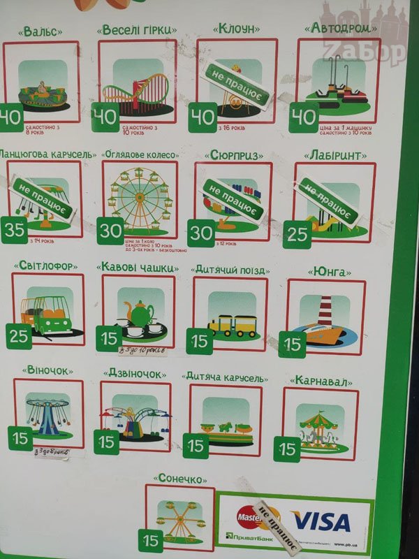 Цены на развлечения также выросли. Теперь самый дешевый билет на аттракционы стоит 15 гривен, самый дорогой 40 грн. В 2019 году (в прошлом году цены не росли, потому что парк почти не работал) самый дешевый билет был 10 гривен, а самый дорогой – 30 грн.