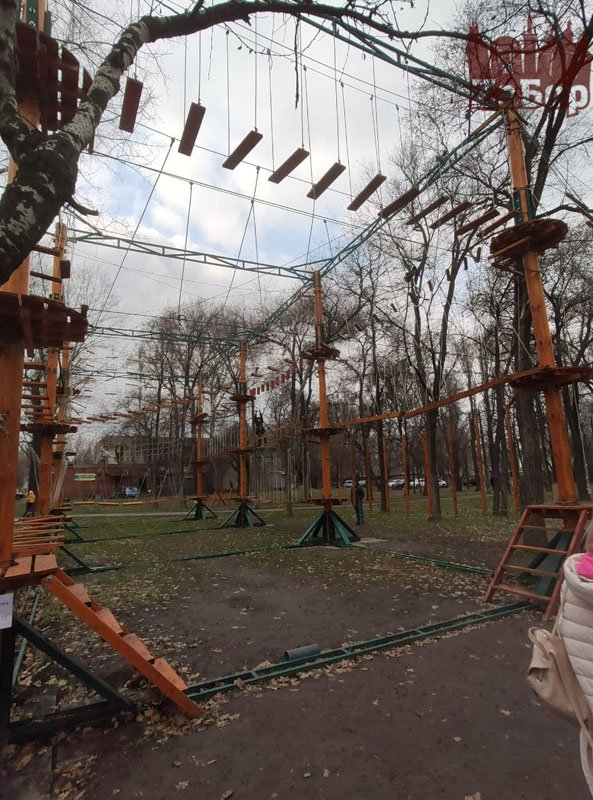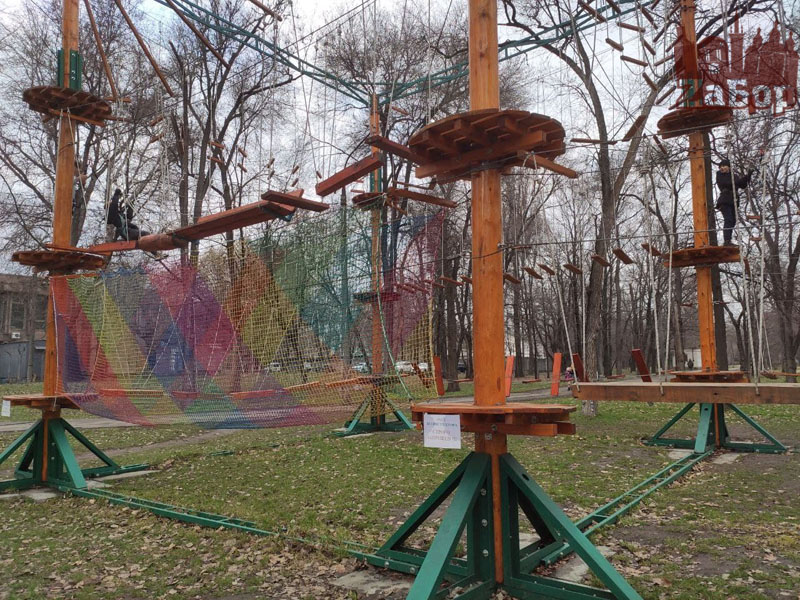 Кроме этого, в "Дубовке" обновили веревочный парк. Тут появились спуски на троллеях.