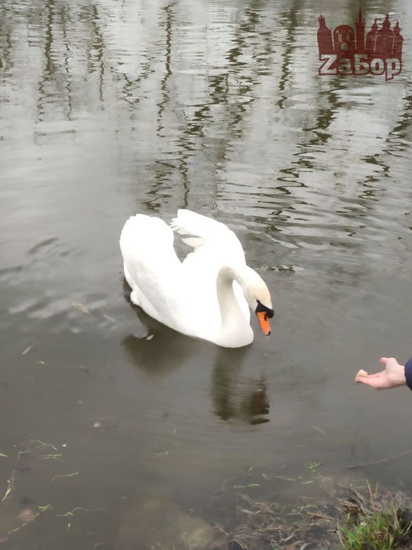 Также, в качестве развлечения, в парке отдыха люди кормят лебедей.