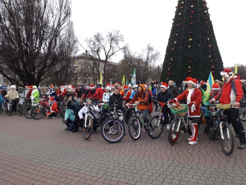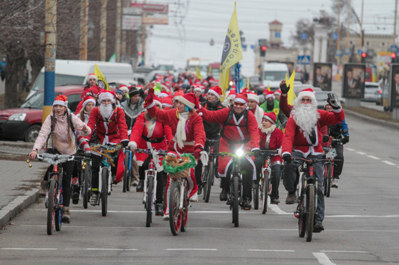 27 декабря по главной улице Запорожья проехались десятки Дедов Морозов и Снегуроек. Главным средством передвижения сказочных персонажей были велосипеды. Об этом сообщает корреспондент сайта "ZаБор".