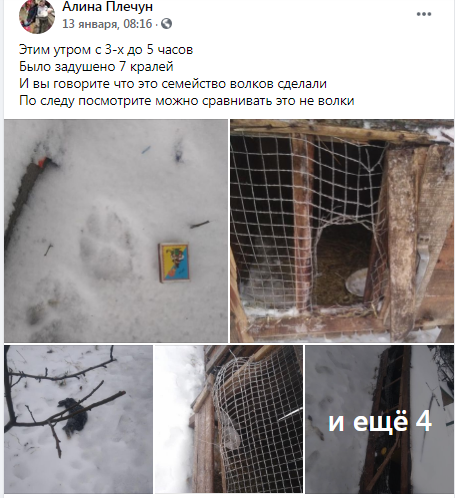 Так, вчера утром, примерно с 3 до 5 утра неизвестный хищник снова наведался в село Беленькое. Местная жительница поделилась фото с последствиями. "Было задушено 7 кролей. И вы говорите, что это семейство волков сделали. По следу посмотрите можно сравнить это не волки", - пишет жительница села.