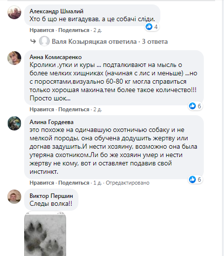 Неизвестный зверь, вырвал провода, которыми были обмотаны клетки для кролей и удушил домашних животных. В комментариях под постом жители Беленького спорят, кто это мог быть. Ведь идентифицировать следы очень трудно. Так, одни говорят, что это одичавшая охотничья собака, другие, что это лиса или волк.