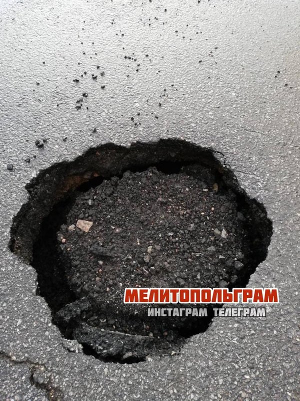 Кроме этого, в городе из-за дождя по улице Пролетарская "земля ушла вниз". Тут провалился асфальт прямо на проезжей части. Судя по фото, провал глубокий.