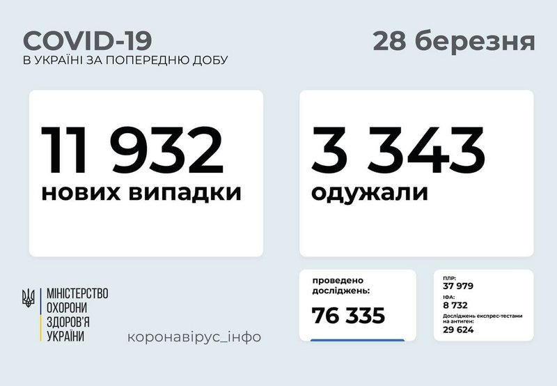 - осуществлено тестирований за сутки – 76 335 (в частности методом ПЦР – 37 979, методом ИФА – 8 732).