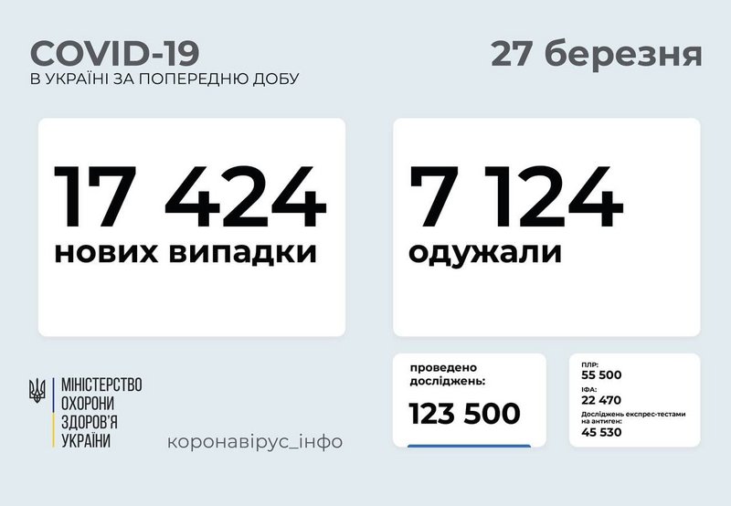 - осуществлено тестирований за сутки – 123 500 (в частности методом ПЦР – 55 500, методом ИФА – 22 470).